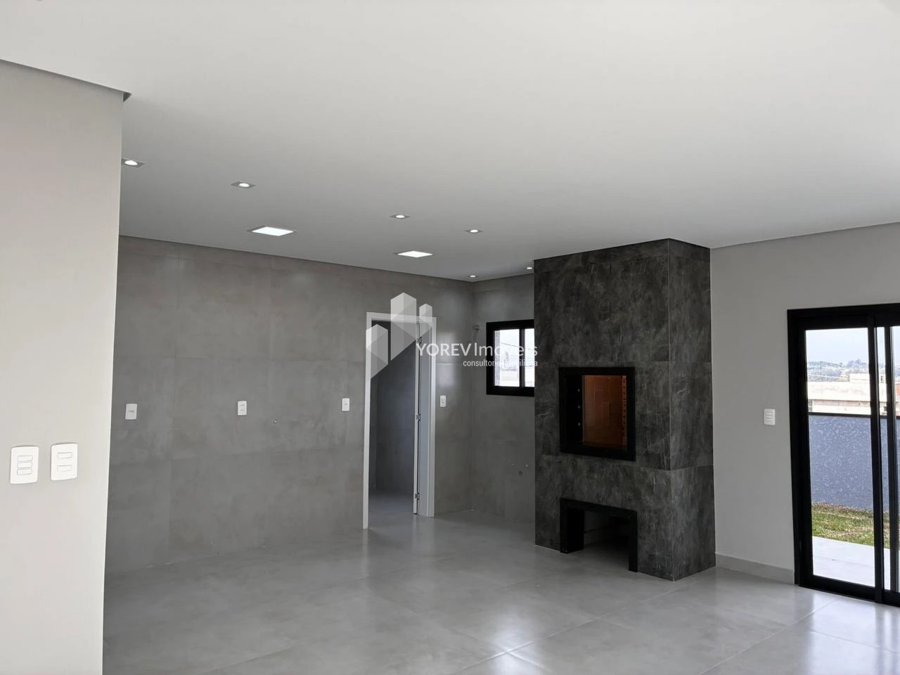 🏡 Sala de estar com pé direito duplo, integrada à sala de jantar e cozinha gourmet
